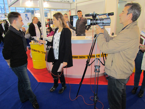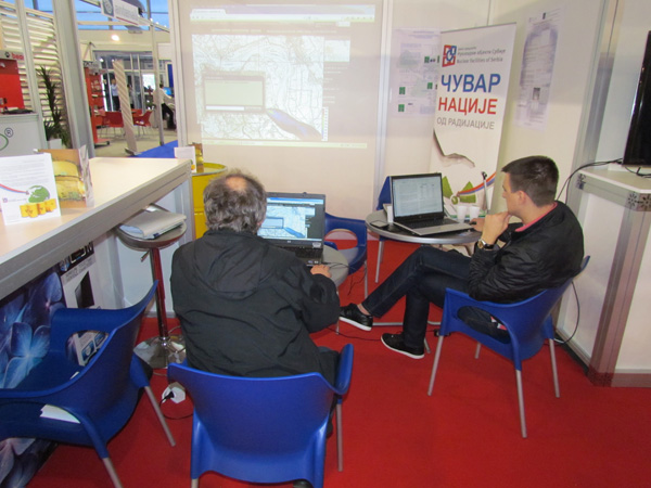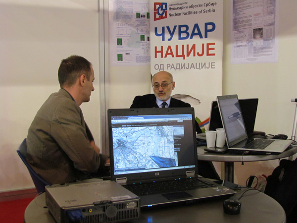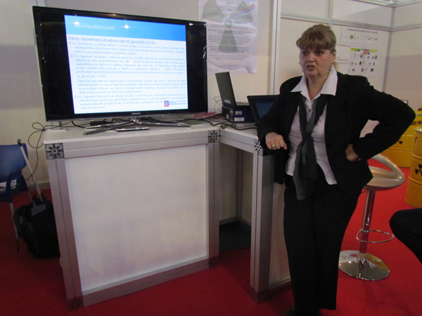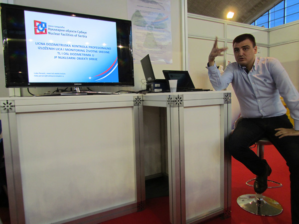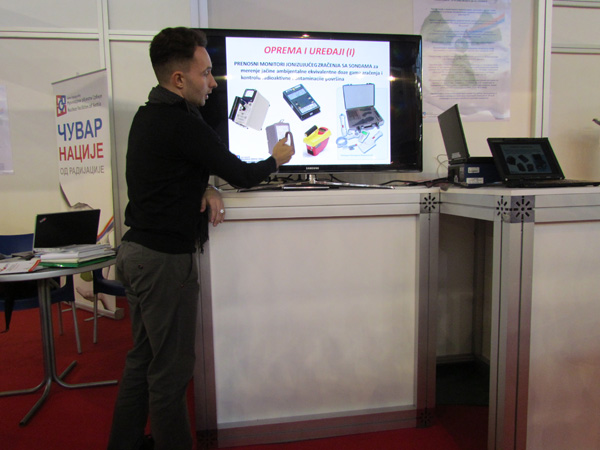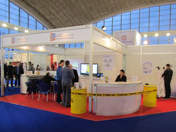 На нашем штанду посетиоци су имали прилике да виде стандардно буре од 200 литара за складиштење радиоактивног отпада, хидрауличке маказе за сечење метала, заштитно Тyвек одело и маску која прекрива лице за рад у зони радиоактивне контаминације, два типа личних дозиметара (ТЛД и ОСЛ) за мерење доза зрачења при спољашњем излагању професионално изложених лица.