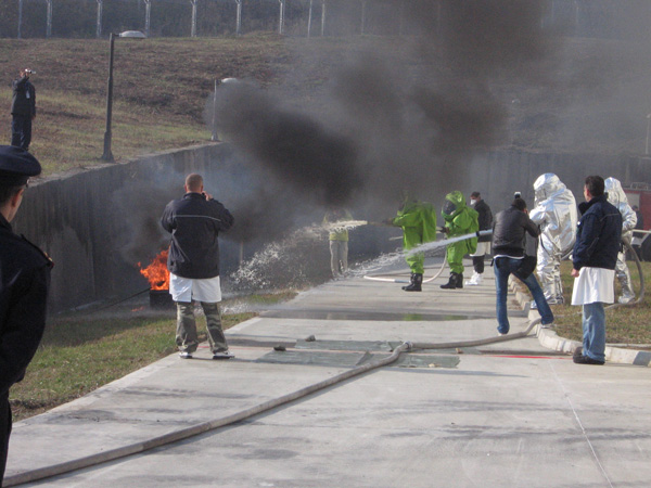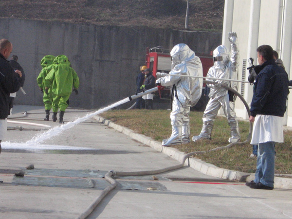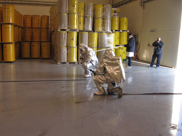 Показна вежба је изведена 14. новембра 2011.године, у оквиру комплакеса за складиштење радиоактивног отпада ЈП „Нуклеарни објекти Србије“.